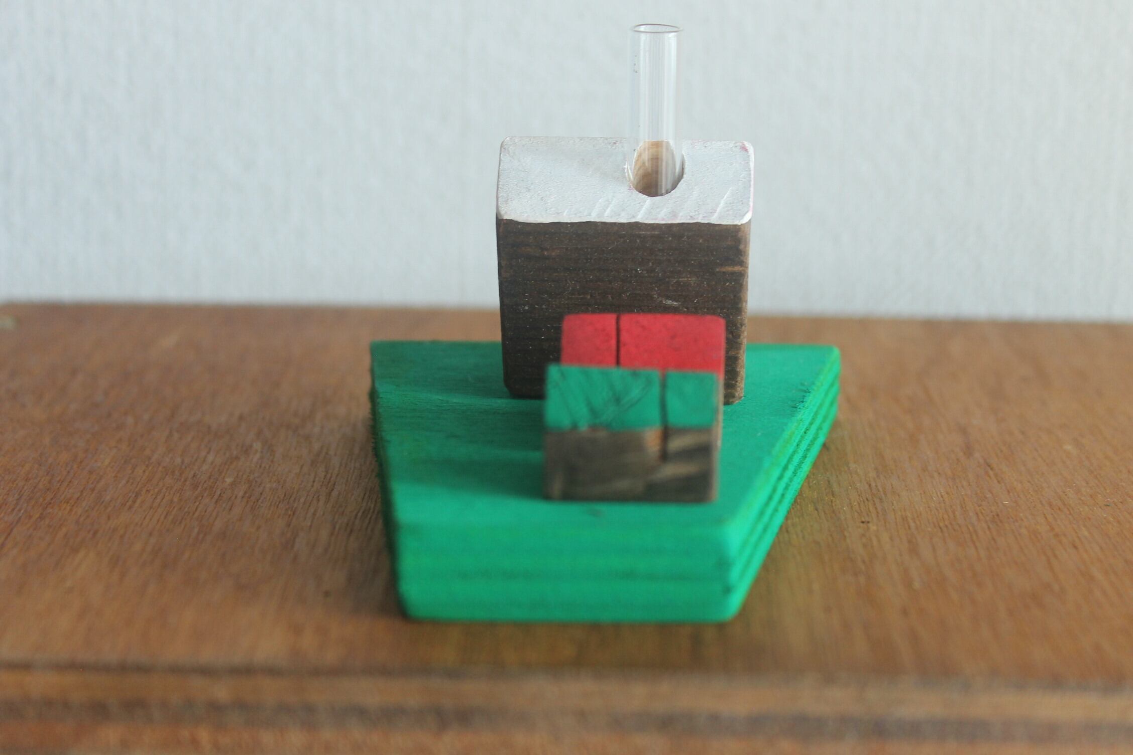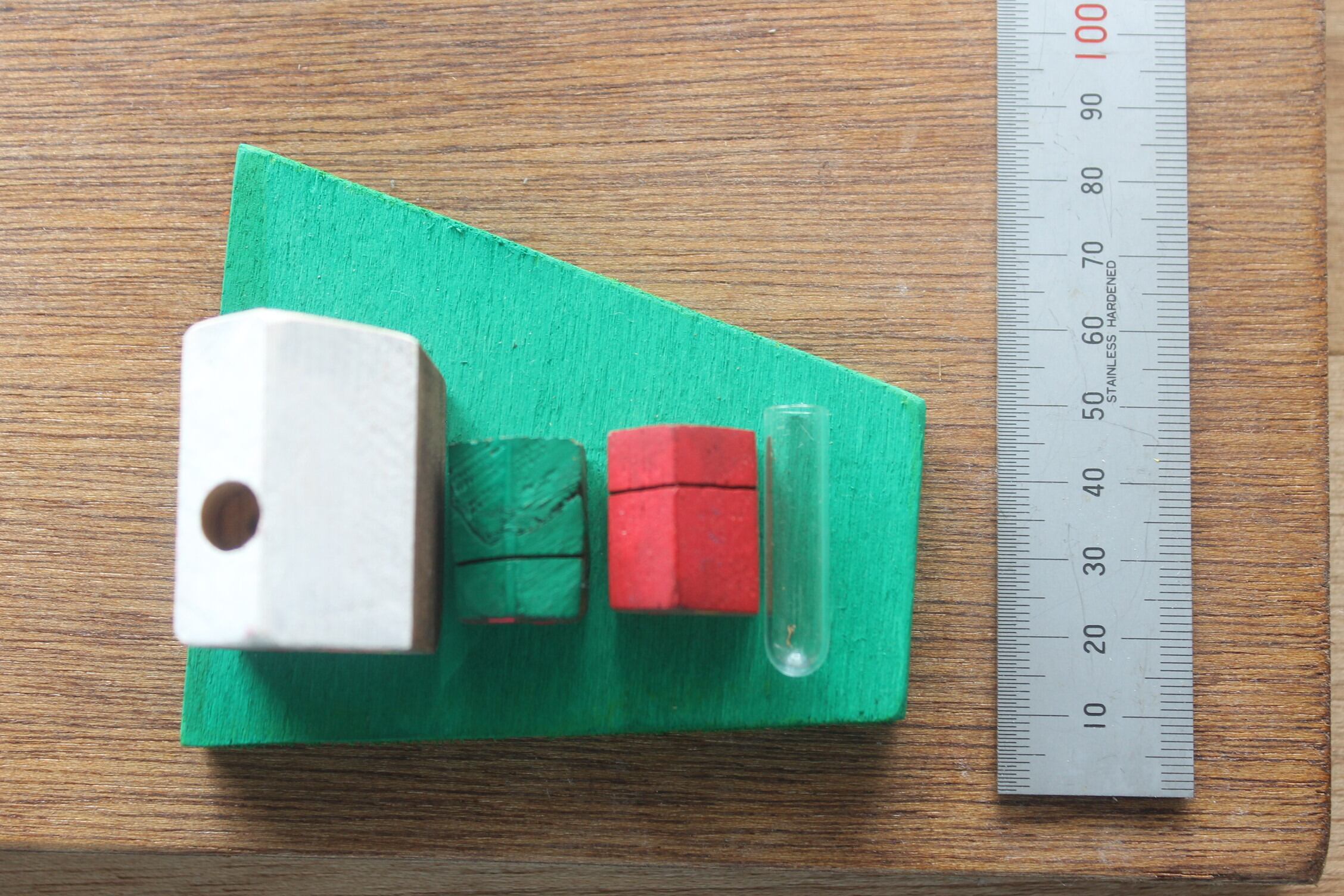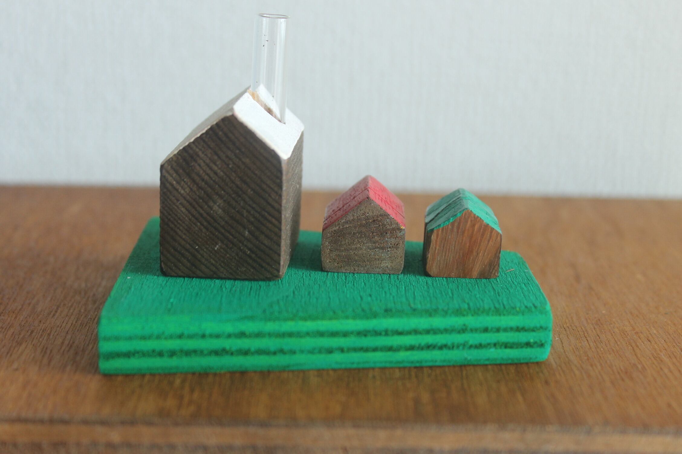 屋根に切れ込みの入った家は、カード立てです。小さな写真や、メモをはさんだり、または葉っぱを差したりと、さまざまに使えます。