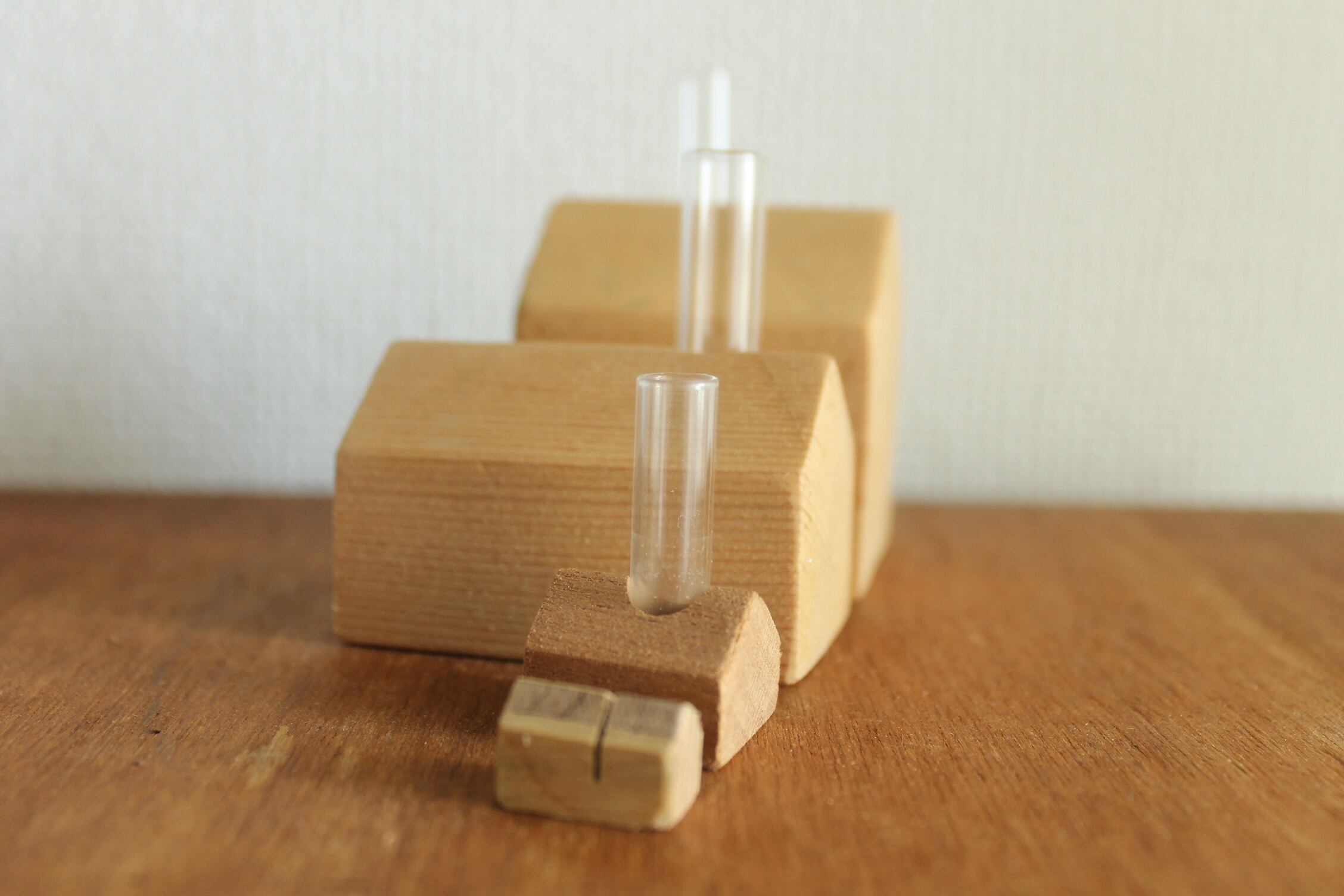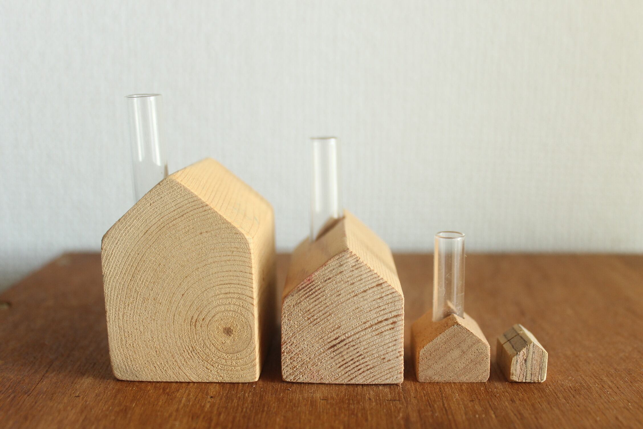 屋根に切れ込みの入った家は、カード立てです。小さな写真や、メモをはさんだり、または葉っぱを差したりと、さまざまに使えます。