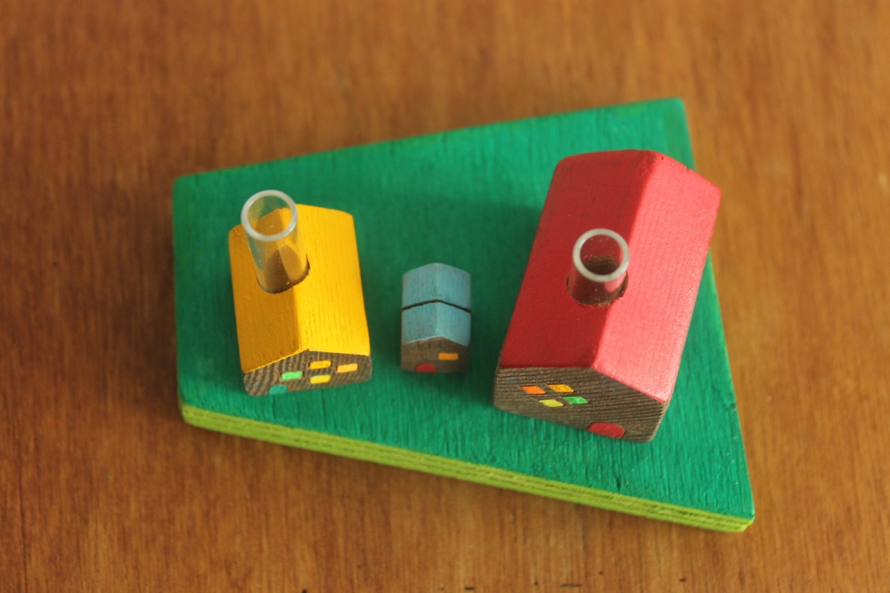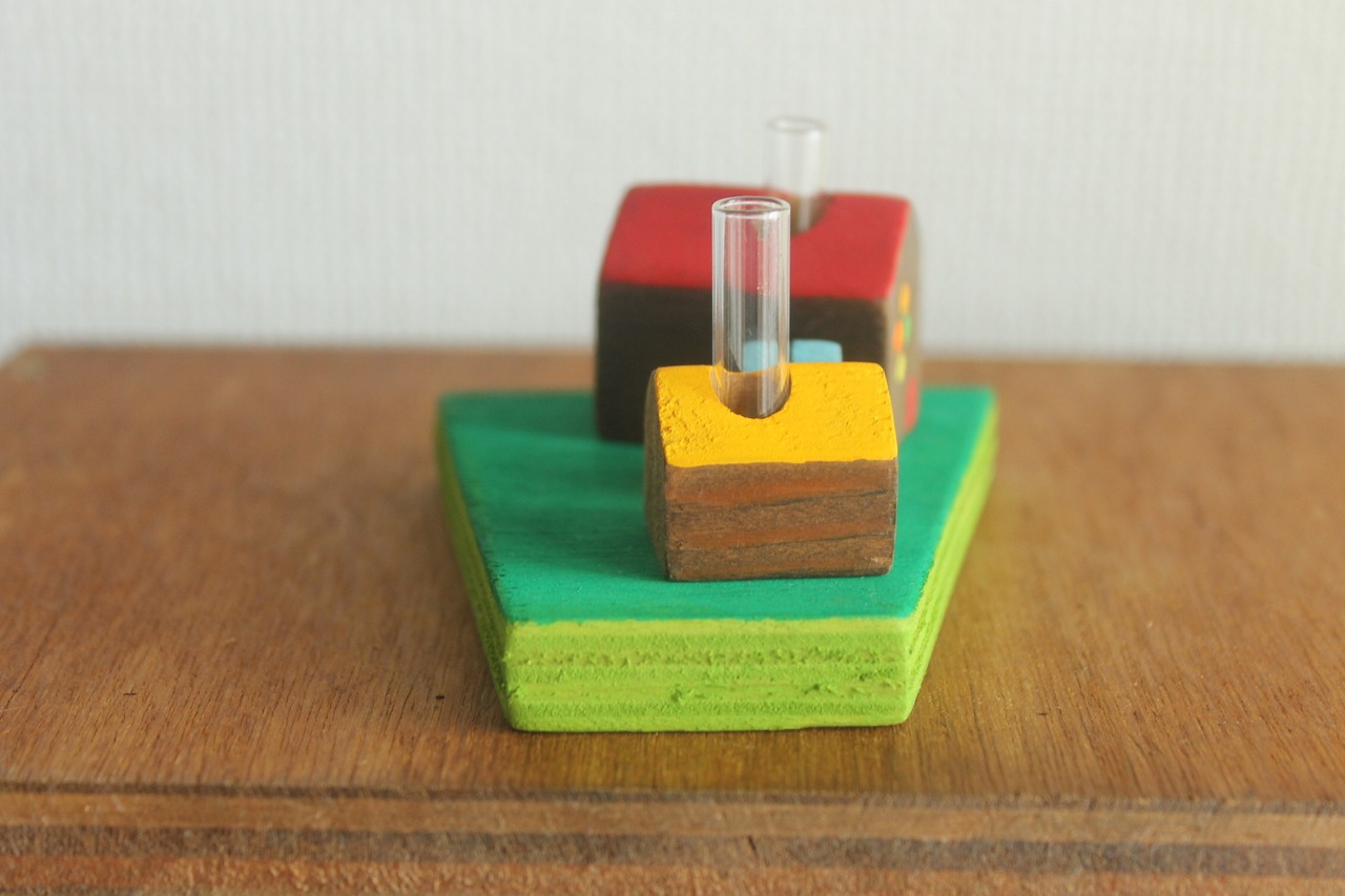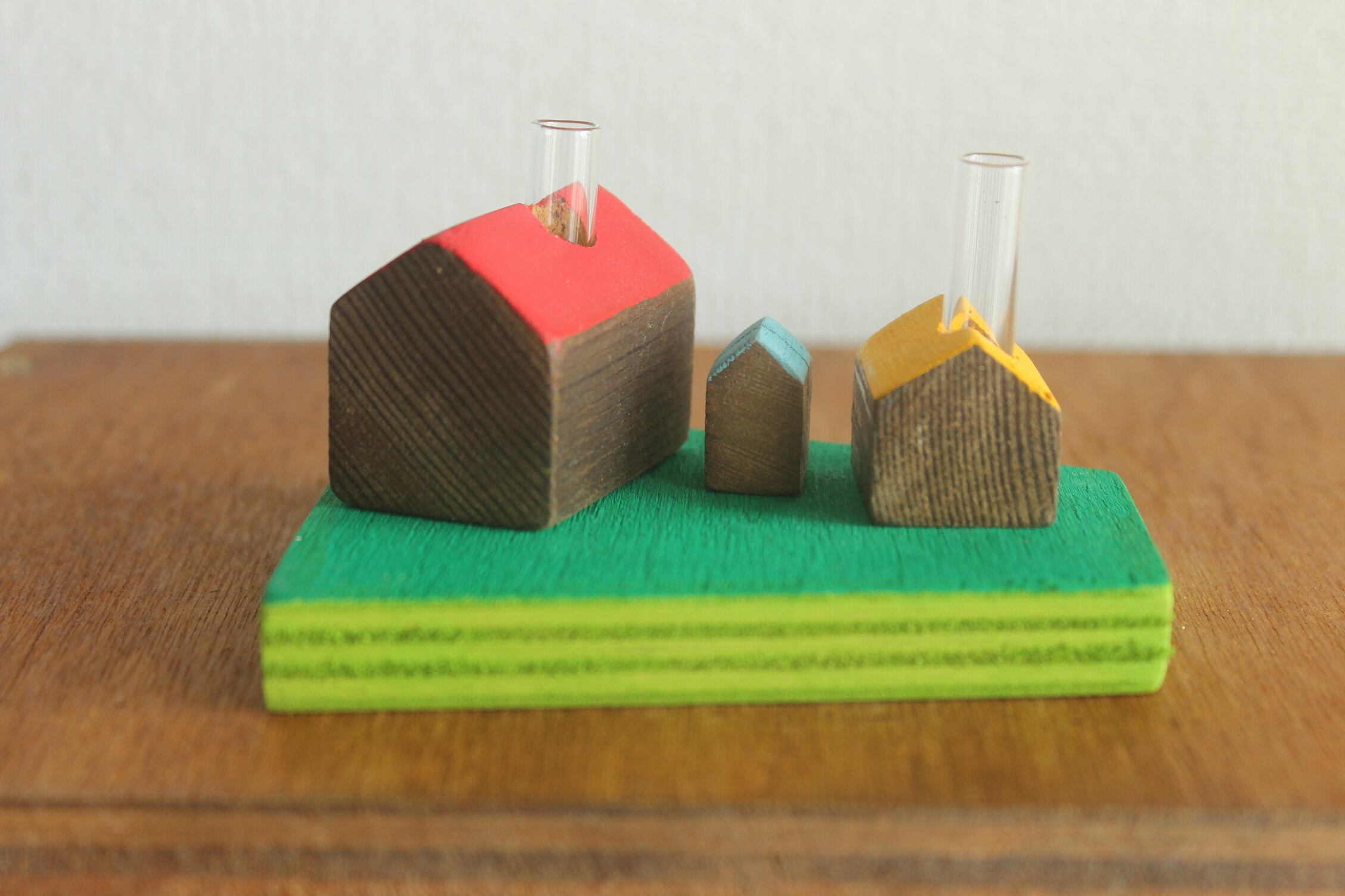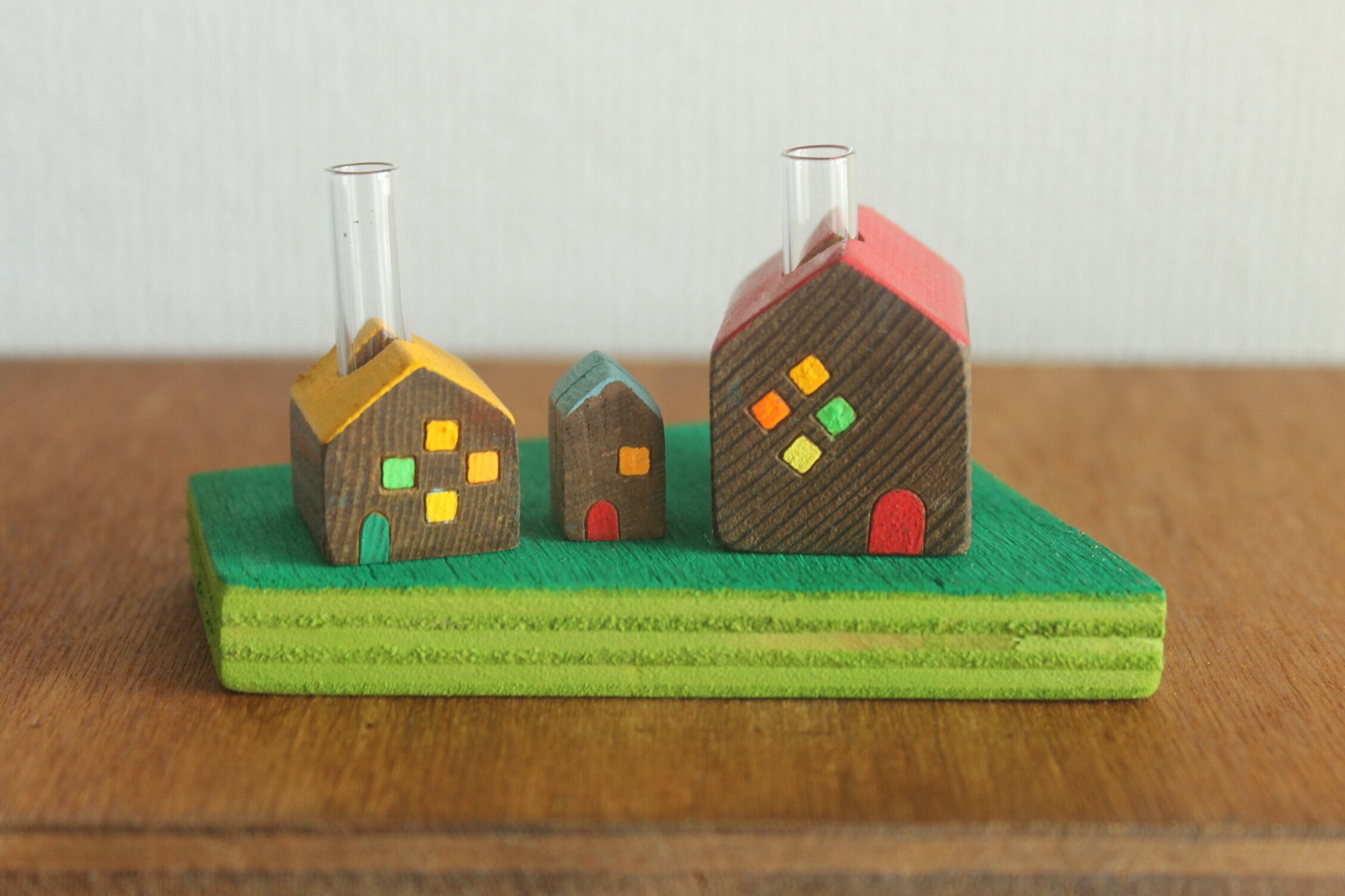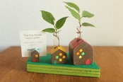 屋根に切れ込みの入った家は、カード立てです。小さな写真や、メモをはさんだり、または葉っぱを差したりと、さまざまに使えます。
