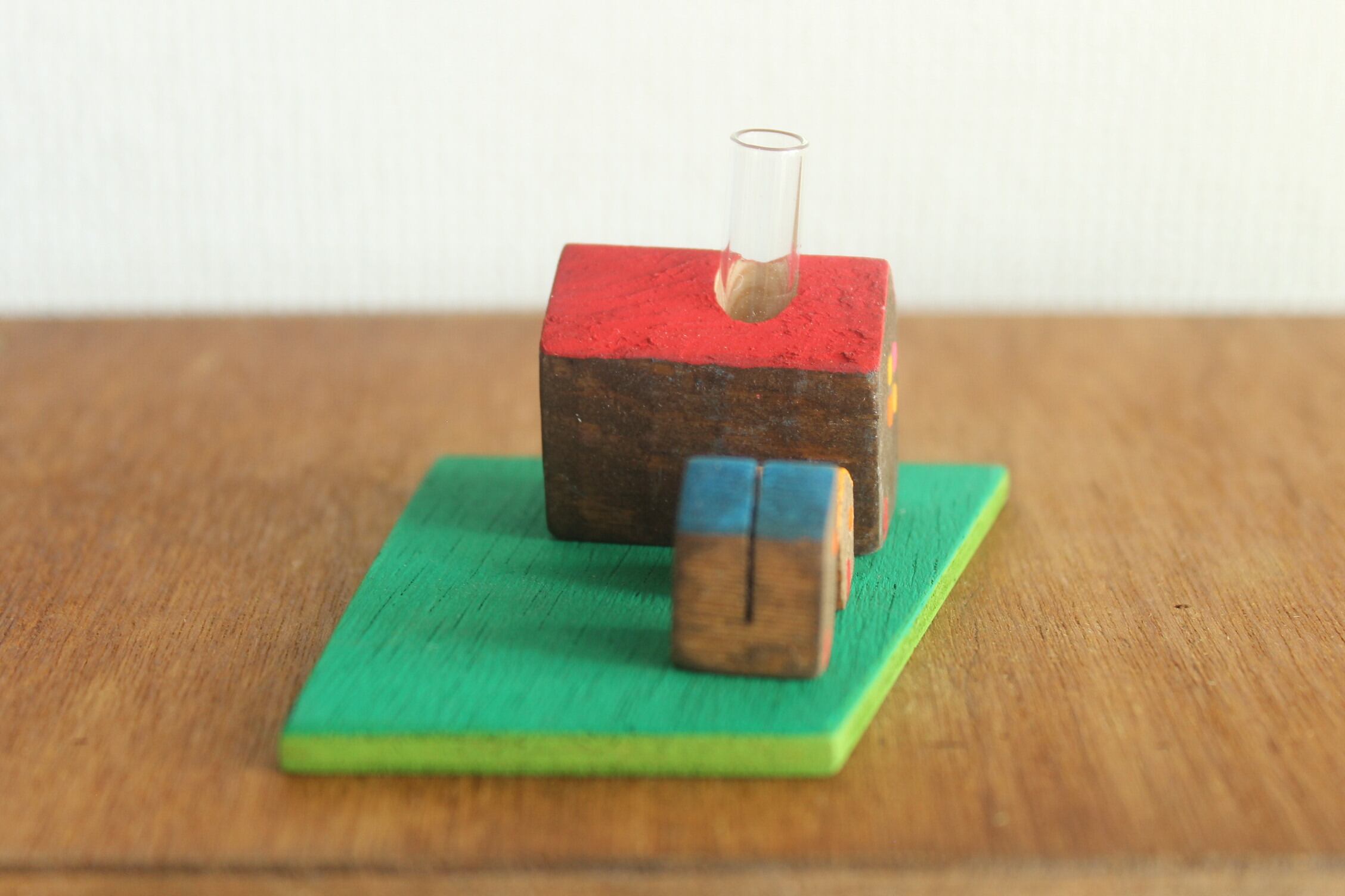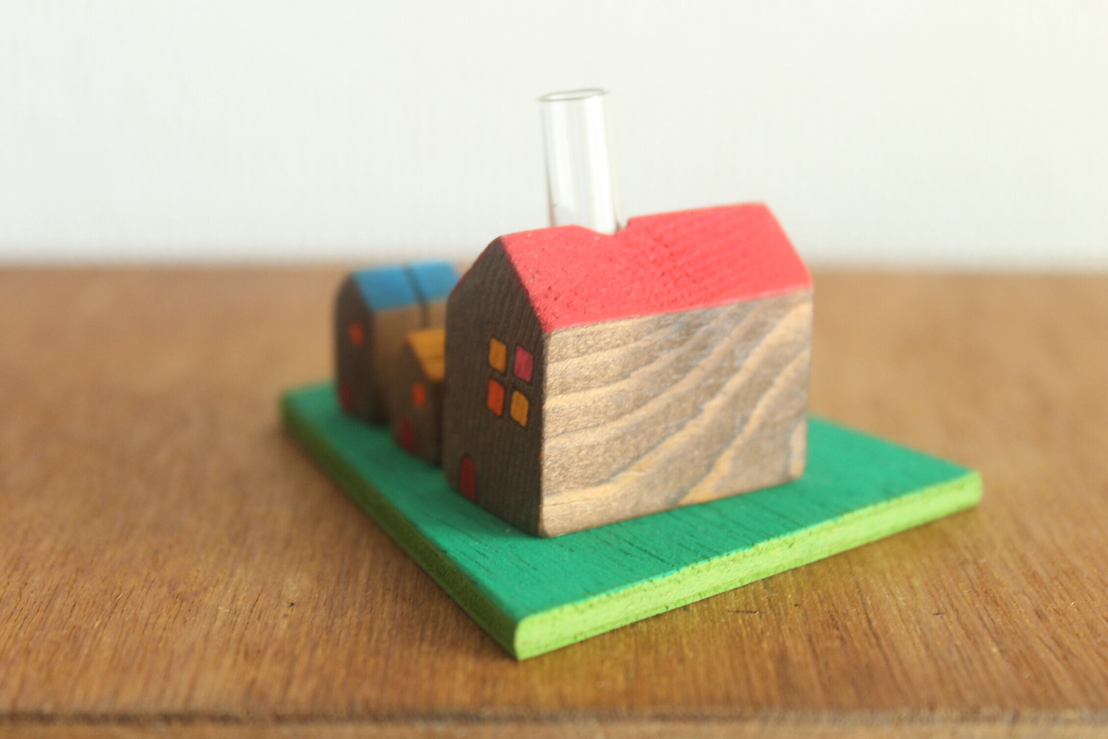 屋根に切れ込みの入った家は、カード立てです。小さな写真や、メモをはさんだり、または葉っぱを差したりと、さまざまに使えます。