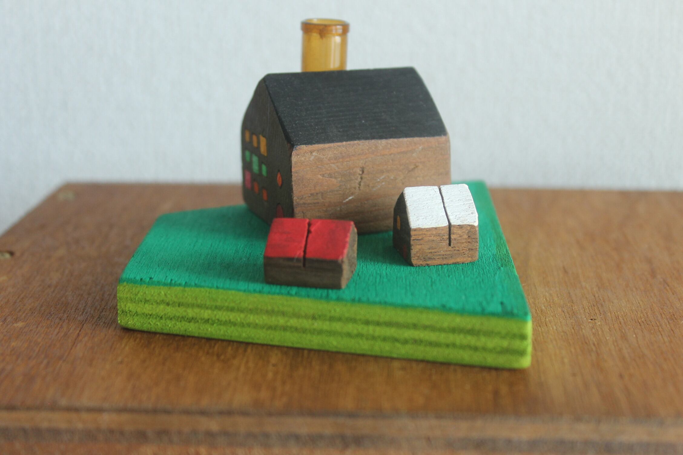 屋根に切れ込みの入った家は、カード立てです。小さな写真や、メモをはさんだり、または葉っぱを差したりと、さまざまに使えます。