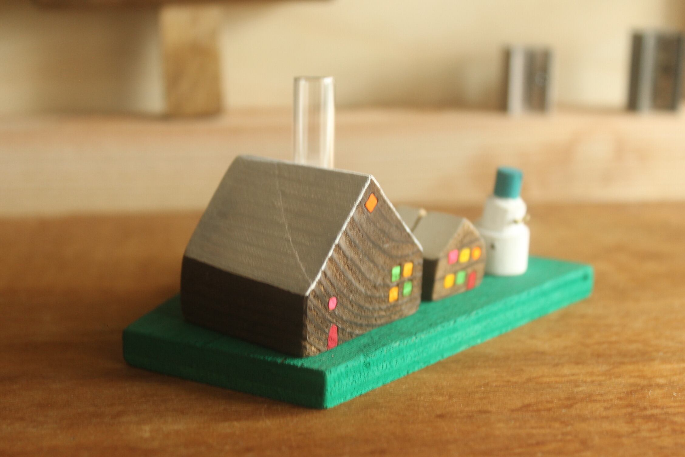 屋根に切れ込みの入った家は、カード立てです。小さな写真や、メモをはさんだり、または葉っぱを差したりと、さまざまに使えます。