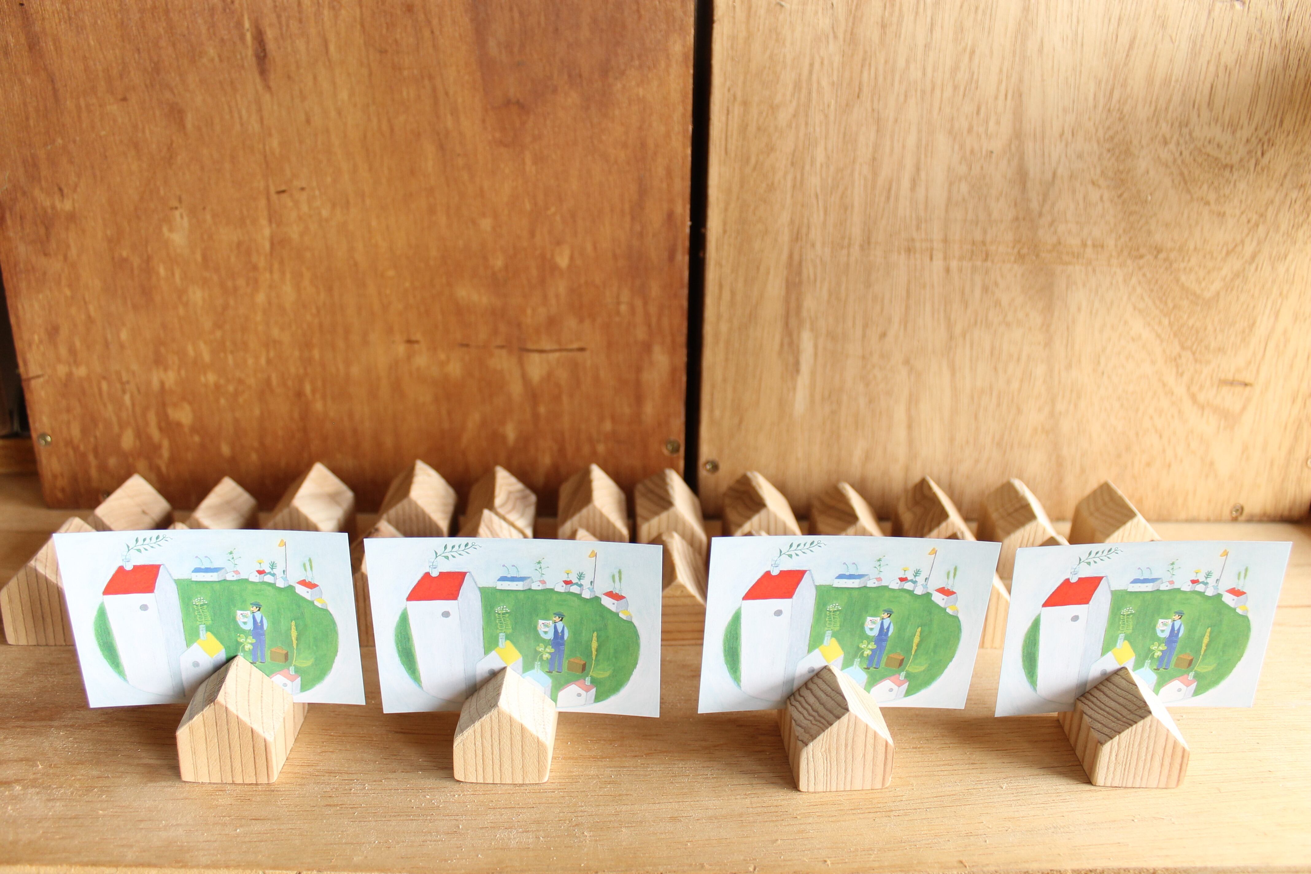 A house with a cut in the roof is a card stand. You can use it as a small photo, insert a word memo, or insert a leaf.